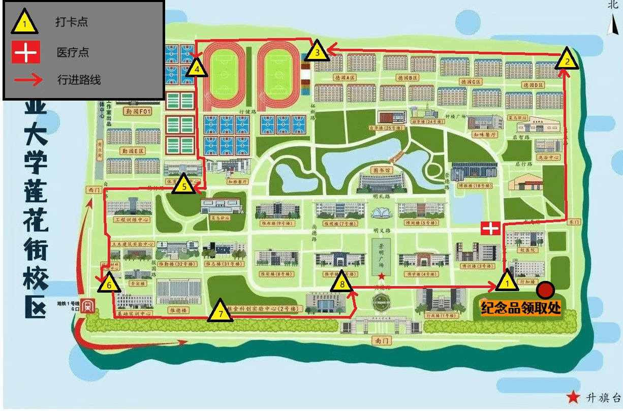 参与活动人员在起始点(行知楼)领取明信片,沿指定路线完成集章后,可至指定纪念品兑换处兑换相应纪念品。参与活动途中原则上不允许使用交通工具。