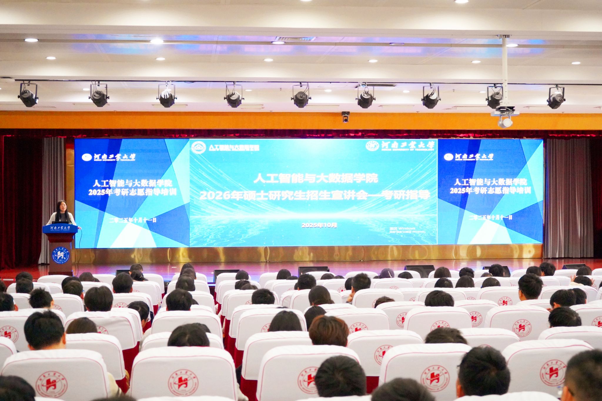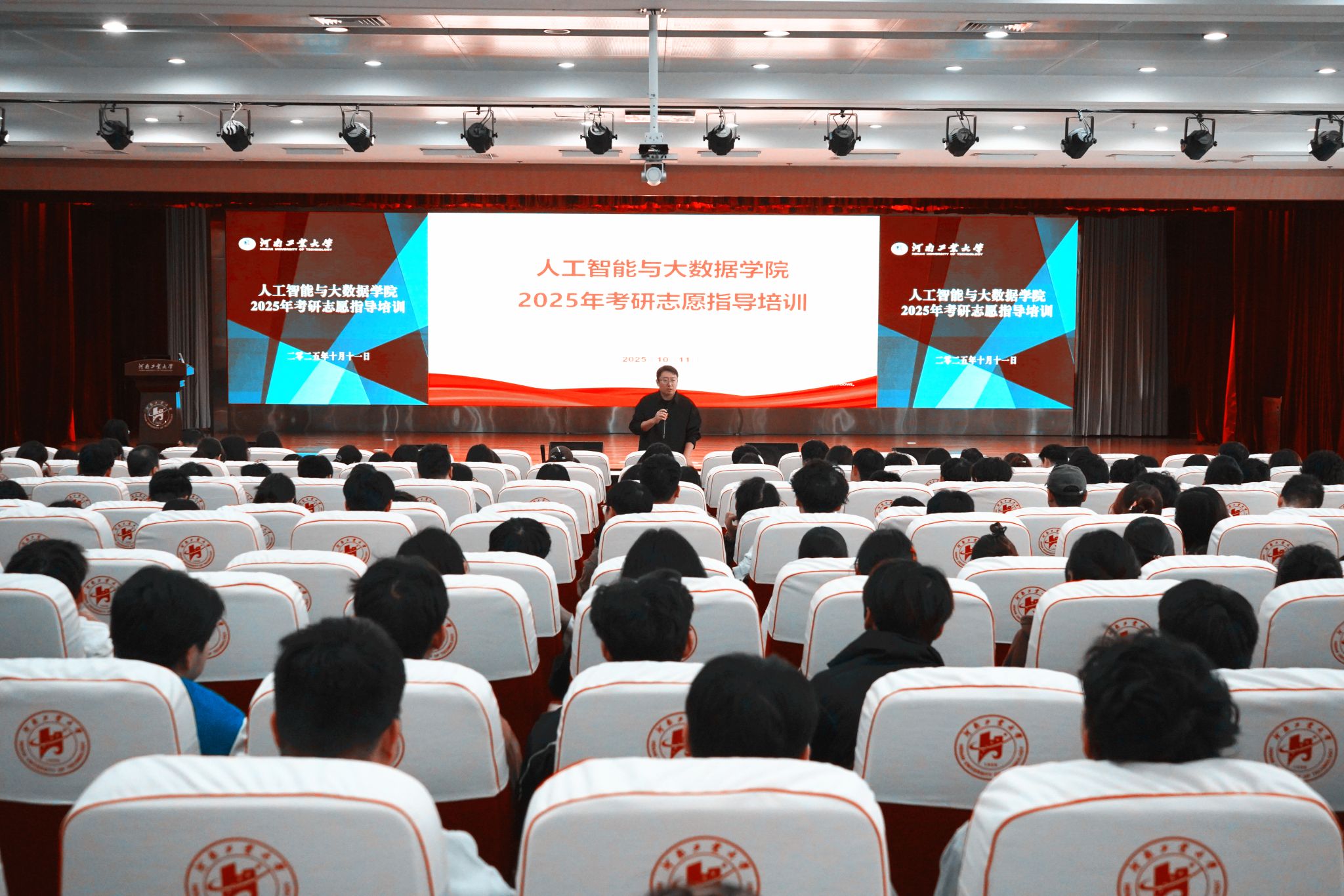为帮助学生进一步明确人生方向,精准把握硕士研究生报考策略,提升学院本科生升学工作质量,10月11日下午,人工智能与大数据学院在学术报告厅D303举办考研志愿指导培训。学院副院长朱春华、企业导师张德新、星光陶等为2022、2023级300余名有考研意向的学生,作了细致深入的辅导报告。报告会由学院党委副书记赵志洋主持。