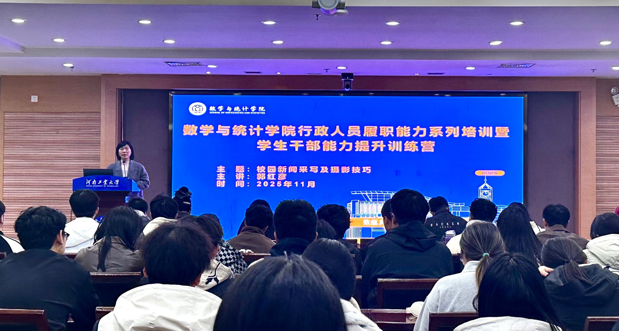 为加强行政人员和学生骨干两支队伍建设,全面提升学院管理服务效能,11月7日中午,数学与统计学院在学术报告中心D102报告厅举行行政人员履职能力系列培训暨学生干部能力提升训练营。数学与统计学院党委书记郭红彦作专题培训,党委副书记程凯主持,各科室行政人员和全体学生会干部参加培训。