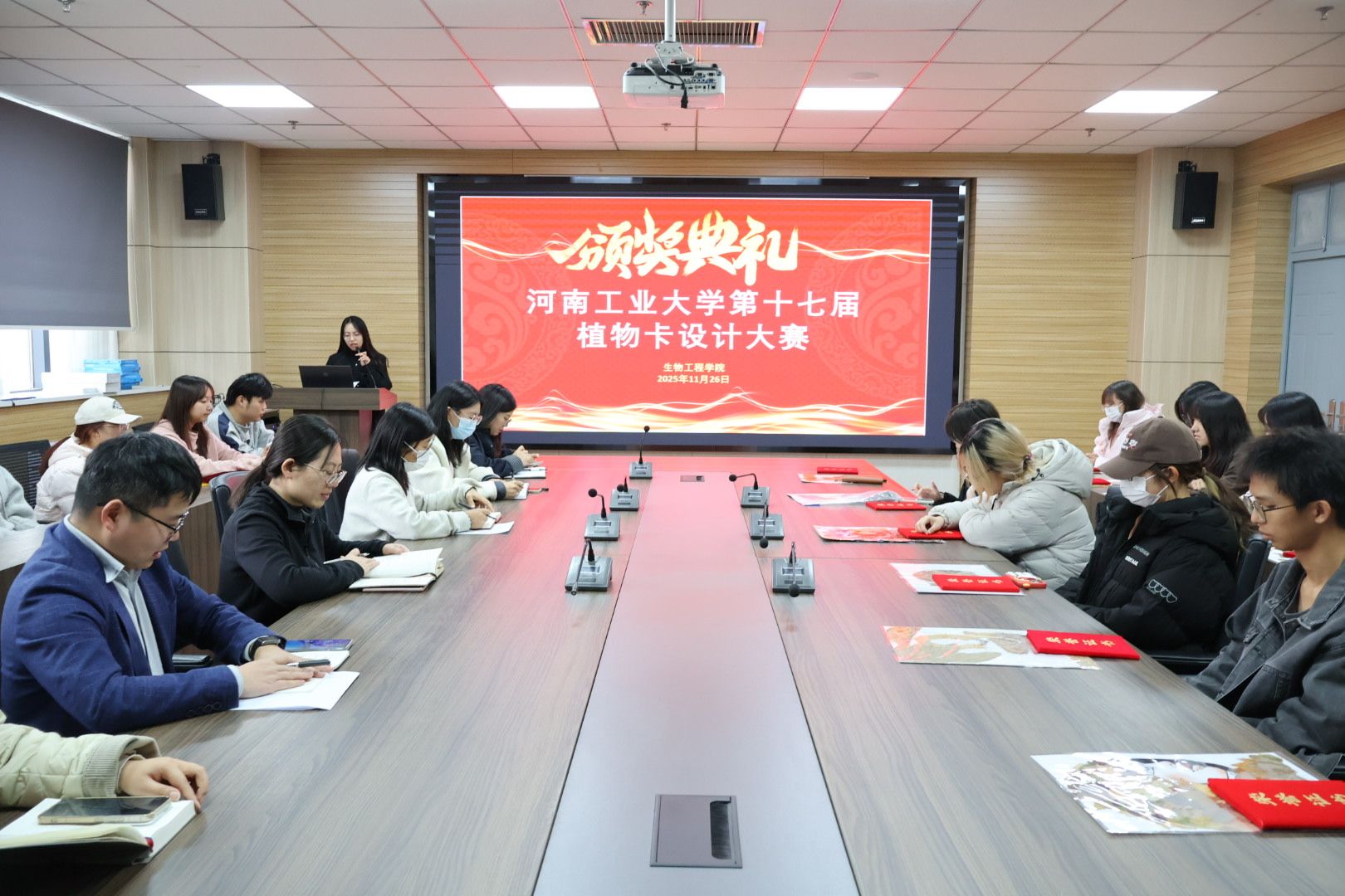 为纪念中国人民抗日战争暨世界反法西斯战争胜利80周年,弘扬伟大的抗战精神,激发当代大学生的爱国情怀与历史责任感,通过艺术力量传承红色基因,展现新时代青年的担当与风采。11月26日,由校团委主办、生物工程学院承办的第十七届“绘往昔峥嵘,守家国初心”植物卡设计大赛颁奖典礼在惟德楼1313会议室举行。生物工程学院党委副书记蔡永平、学工办主任岳媛媛、团委书记杨雨薇及全体辅导员、获奖学生参加了活动。