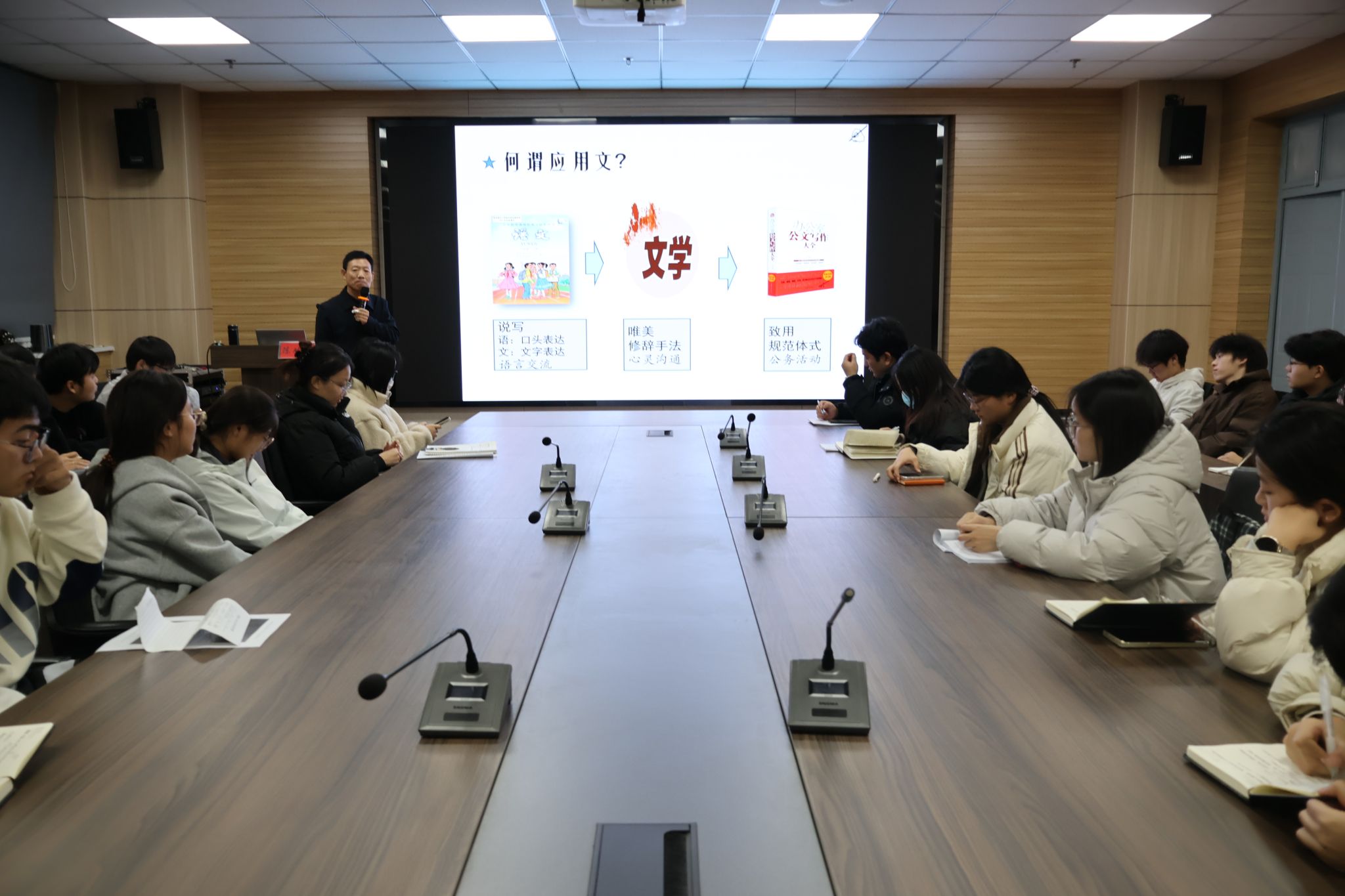 陈从志书记围绕“何谓应用文”“应用文的类别及特点”以及“如何写好应用文”三个层面展开系统讲解。他结合学生工作实际,详细介绍了法定公文、工作总结、新闻稿等常见类型的文体特征与使用场景,并通过典型案例对比,剖析各类文体的写作要点与常见误区,他还特别分享了公文写作中的“三审三校”流程与格式排版规范。在“如何写好应用文”部分,陈书记重点讲解了写作前的准备、结构布局、语言表达等环节,提出“内容真实、条理清晰、语言简练、格式规范”的十六字写作原则。最后,陈从志书记鼓励大家建立“日常积累、反复打磨、多方请教”的写作习惯,将写作视为一项可训练、可提升的核心能力,真正把学习成果转化为推动工作的实效。