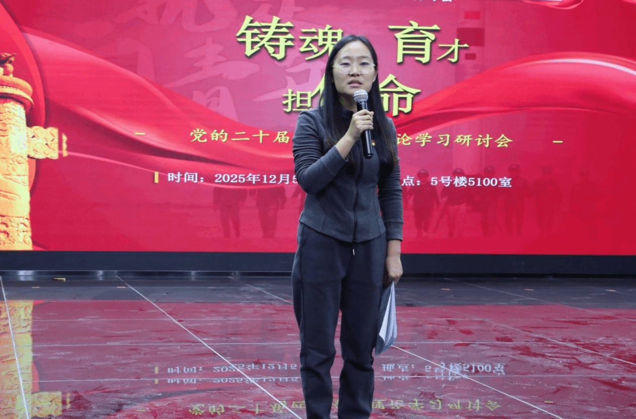 随后,孔丽结合党的二十届四中全会精神,围绕高等教育“为党育人、为国育才”要求,提出三个核心研讨问题,引导同学们思考“铸魂”与专业学习的内在联系、主流价值引领与文化传播的实现路径,以及如何将专业所长与青年担当结合践行“强国有我”的承诺。