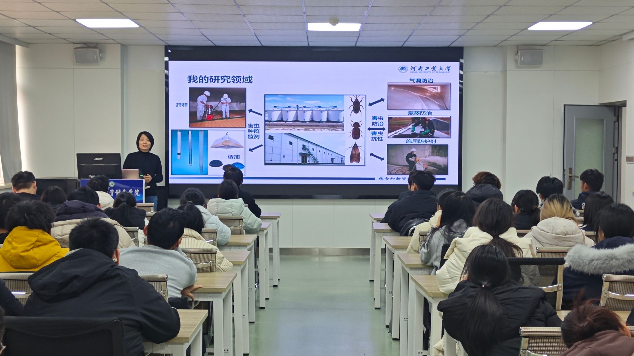 作为省教育厅学术技术带头人、我校储藏物昆虫生态与监控科研团队负责人,王争艳以校友情切入,回溯母校求学与科研起步历程,分享粮食科学领域探索突破的故事,让学子真切感受科研“积跬步以至千里”的力量。