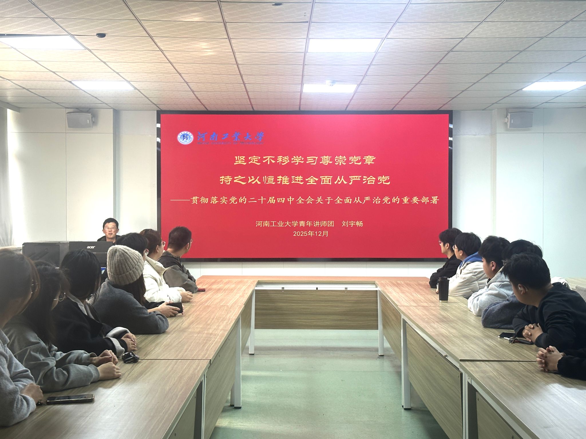 刘宇畅带头领学党的二十届四中全会精神核心要义。他深入解读了“十五五”发展规划中与粮食领域息息相关的重点部署,详细阐述了粮食安全作为国家安全重要基础的战略地位,强调科技创新在推动行业转型升级中的关键作用,以及乡村振兴战略为粮食产业带来的新机遇。同时,结合河南“六个强省”建设目标,着重分析了“农业强省”“创新强省”发展要求对学院学子的期望与指引。