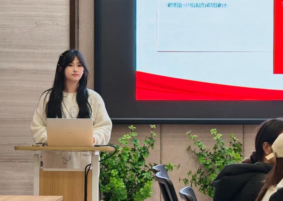 研读会开篇,李程围绕全会核心精神作导学分享,系统解读“十五五规划”中“青年主力助力经济发展”“推进中外文明交流互鉴”等关键部署。结合国际教育特色,重点阐释“培养具有全球视野的复合型人才”“讲好中国现代化故事”的实践要求,强调青马学员需立足中外交流前沿,在跨文化传播、国际人才联合培养等领域主动担当,将个人发展与国家发展大局紧密结合。